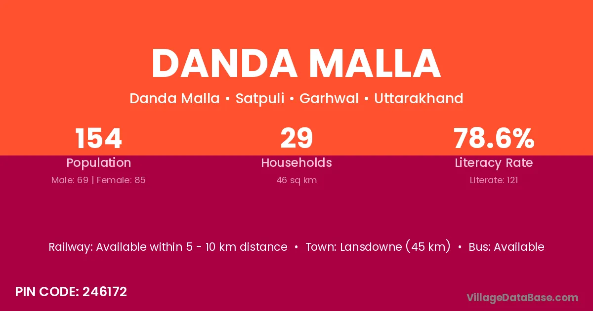 Lansdowne (45 km) is the nearest town to Danda Malla village for major economic activities and is located approximately 45 km away.