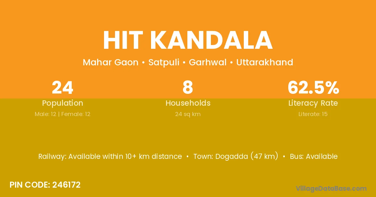 Hit Kandala village has a total population of 24 people, of which 12 are males and 12 are females.