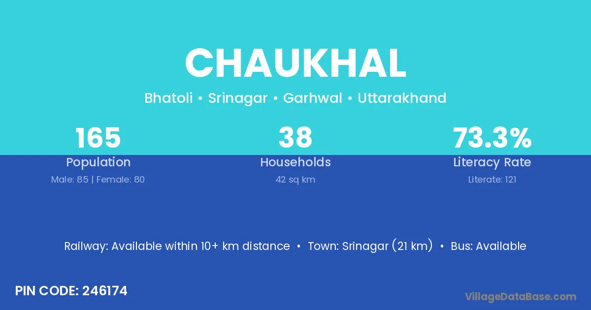 Srinagar (21 km) is the nearest town to Chaukhal village for major economic activities and is located approximately 21 km away.