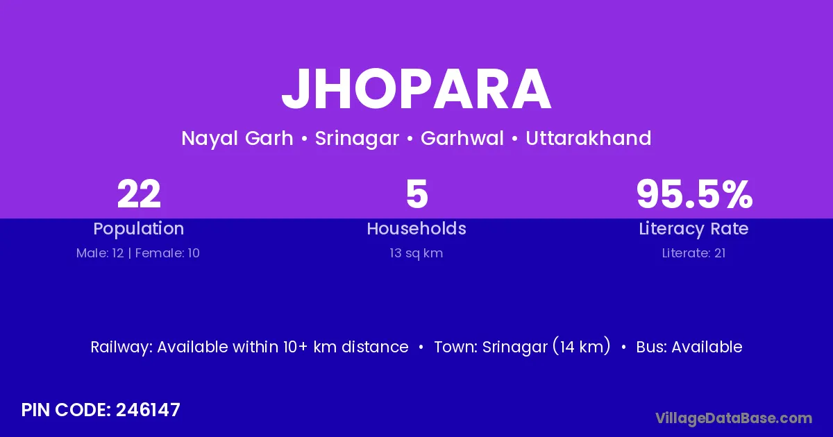 Srinagar (14 km) is the nearest town to Jhopara village for major economic activities and is located approximately 14 km away.