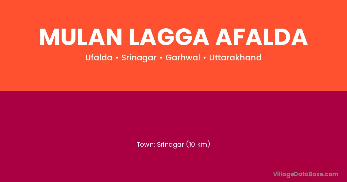 Mulan Lagga Afalda village is located in the Srinagar Tehsil of the Garhwal district in Uttarakhand .