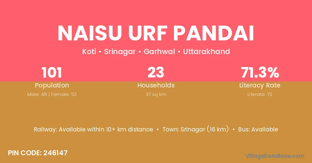 Srinagar (16 km) is the nearest town to Naisu Urf Pandai village for major economic activities and is located approximately 16 km away.