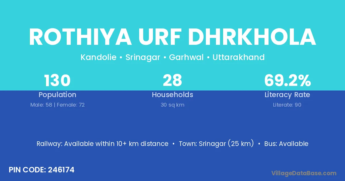 Srinagar (25 km) is the nearest town to Rothiya Urf Dhrkhola village for major economic activities and is located approximately 25 km away.