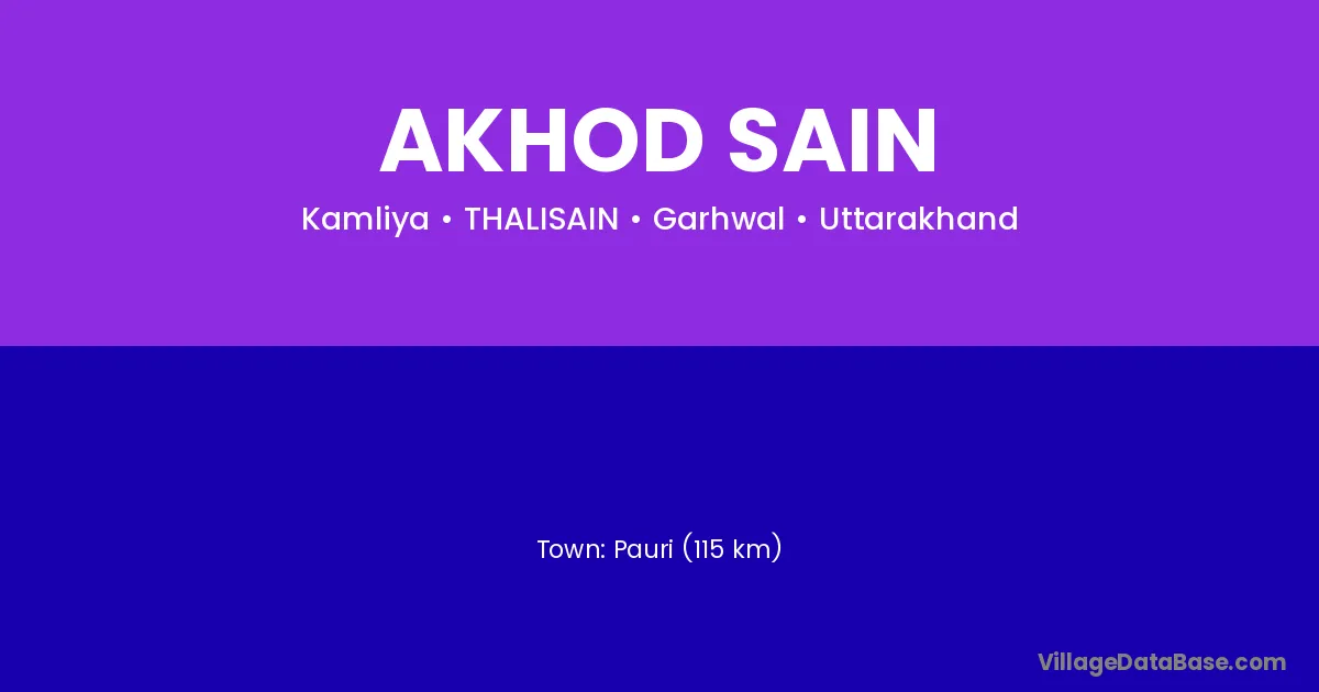 Pauri (115 km) is the nearest town to Akhod Sain village for major economic activities and is located approximately 115 km away.