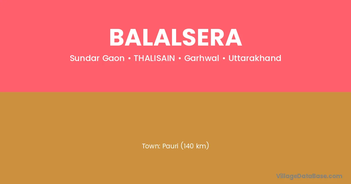 Pauri (140 km) is the nearest town to Balalsera village for major economic activities and is located approximately 140 km away.