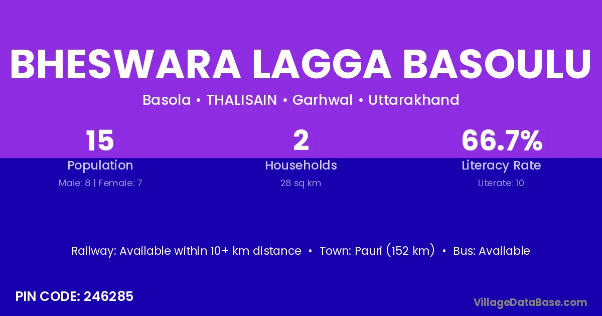 Bheswara Lagga Basoulu village is located in the THALISAIN Tehsil of the Garhwal district in Uttarakhand .