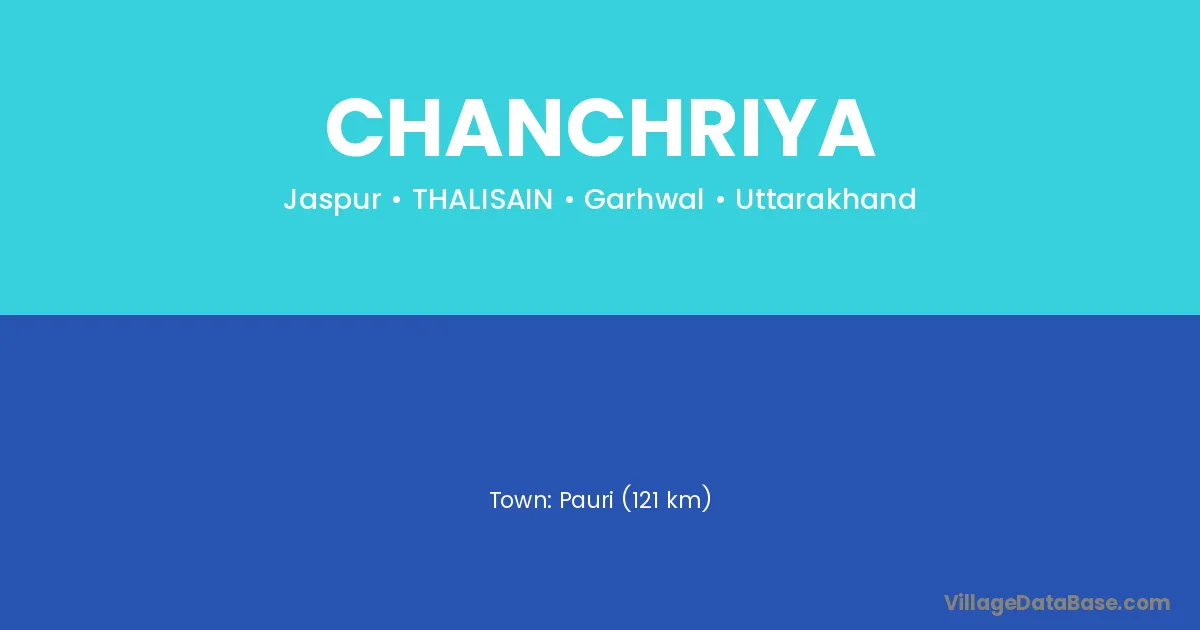 Pauri (121 km) is the nearest town to Chanchriya village for major economic activities and is located approximately 121 km away.