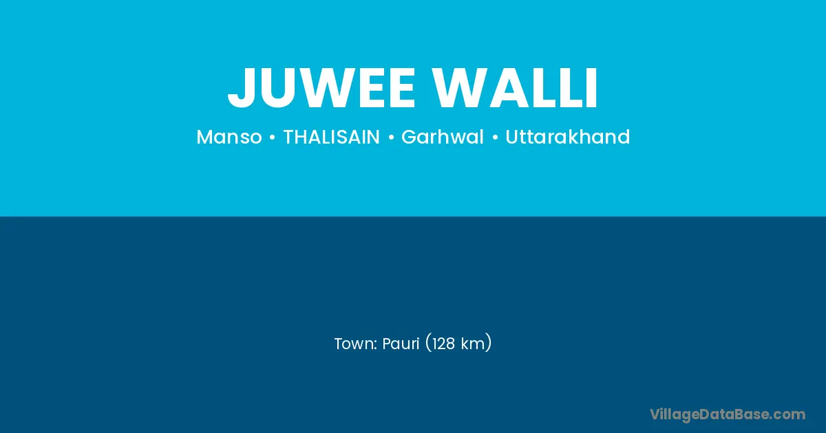 Pauri (128 km) is the nearest town to Juwee Walli village for major economic activities and is located approximately 128 km away.