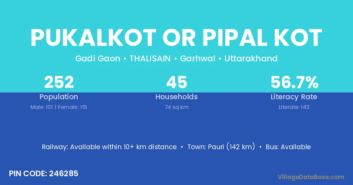 According to Census 2011 information, the village code of Pukalkot Or Pipal Kot village is 246285.