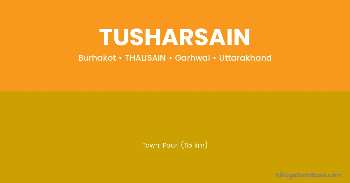 Pauri (115 km) is the nearest town to Tusharsain village for major economic activities and is located approximately 115 km away.