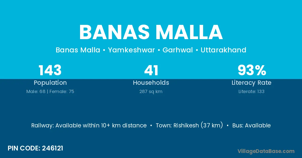 Rishikesh (37 km) is the nearest town to Banas Malla village for major economic activities and is located approximately 37 km away.