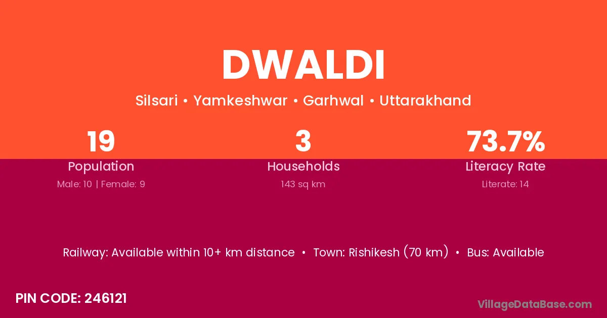 According to Census 2011 information, the village code of Dwaldi village is 246121.