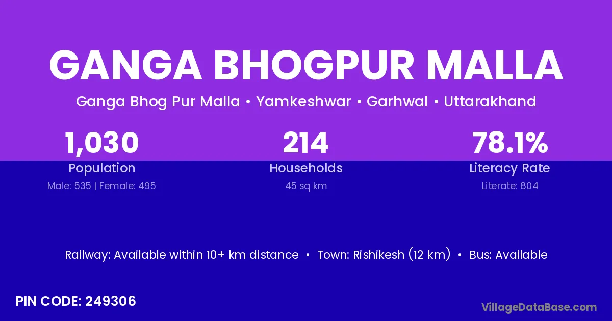 Ganga Bhogpur Malla village has a total population of 1,030 people, of which 535 are males and 495 are females.
