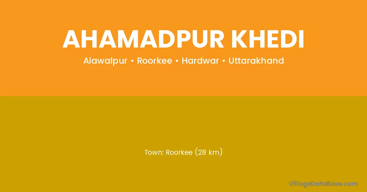 Roorkee (28 km) is the nearest town to Ahamadpur Khedi village for major economic activities and is located approximately 28 km away.