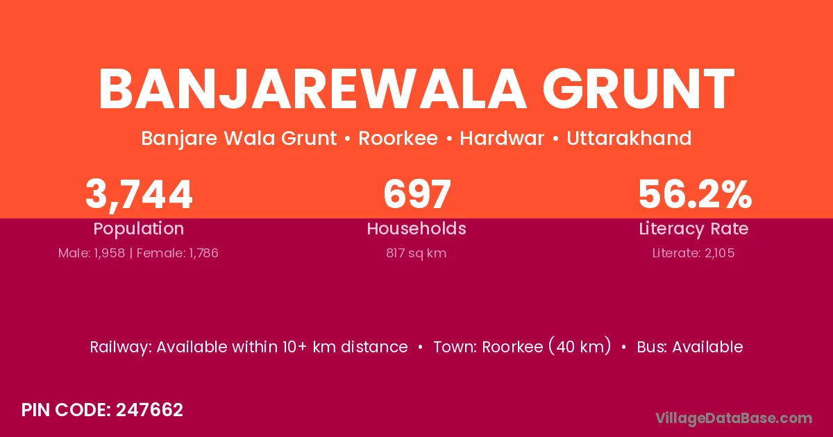 Roorkee (40 km) is the nearest town to Banjarewala Grunt village for major economic activities and is located approximately 40 km away.