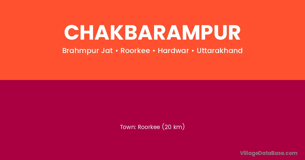 Roorkee (20 km) is the nearest town to Chakbarampur village for major economic activities and is located approximately 20 km away.
