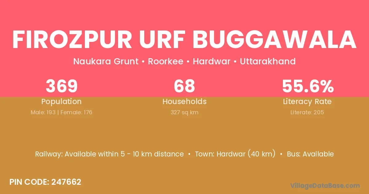 Firozpur Urf Buggawala village has a total population of 369 people, of which 193 are males and 176 are females.