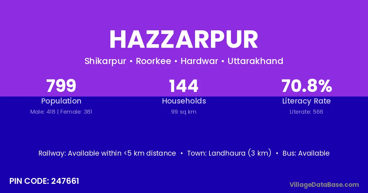 According to Census 2011 information, the village code of Hazzarpur village is 247661.