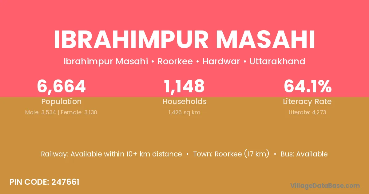 Roorkee (17 km) is the nearest town to Ibrahimpur Masahi village for major economic activities and is located approximately 17 km away.