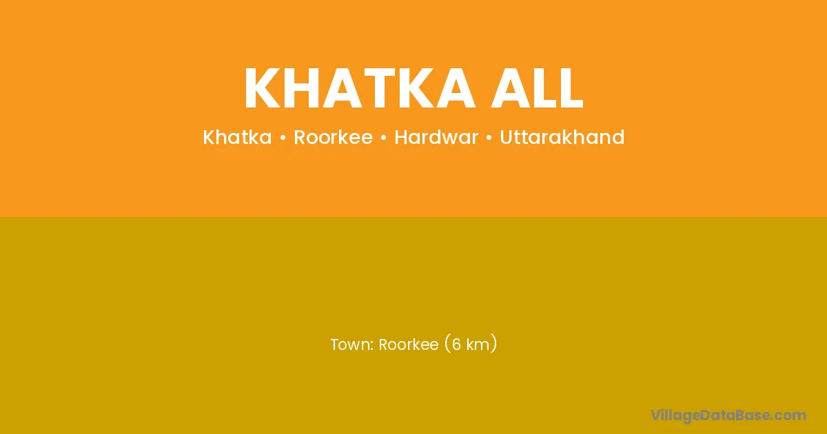 Roorkee (6 km) is the nearest town to Khatka All village for major economic activities and is located approximately 6 km away.