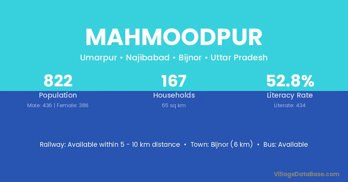 Roorkee (12 km) is the nearest town to Mahmoodpur village for major economic activities and is located approximately 12 km away.