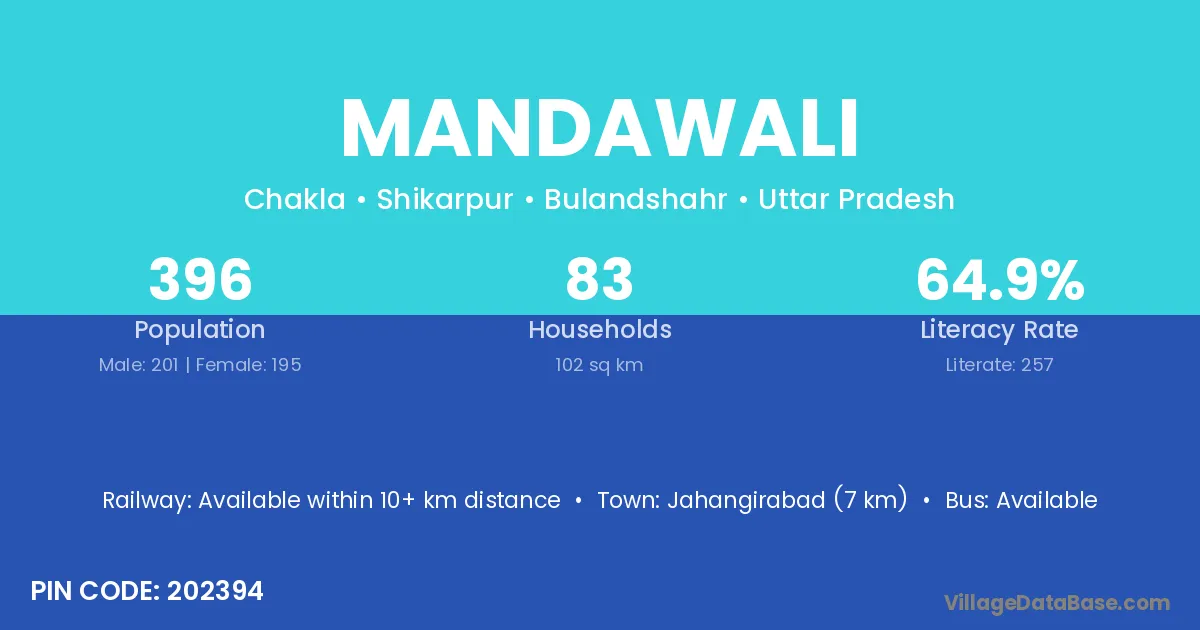 Manglaur (5 km) is the nearest town to Mandawali village for major economic activities and is located approximately 5 km away.