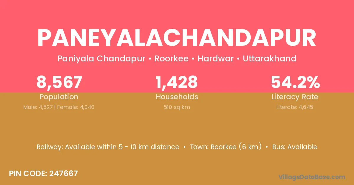 Roorkee (6 km) is the nearest town to Paneyalachandapur village for major economic activities and is located approximately 6 km away.