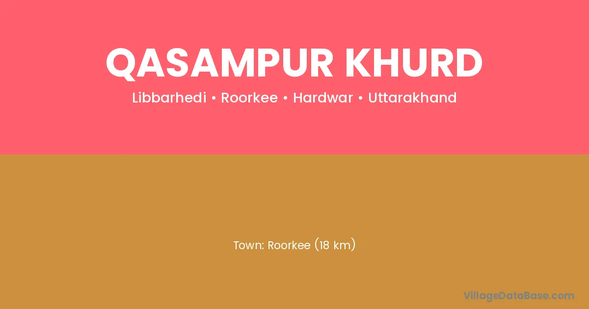 Roorkee (18 km) is the nearest town to Qasampur Khurd village for major economic activities and is located approximately 18 km away.