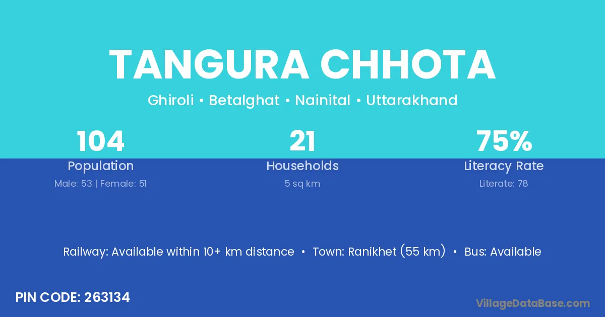 Tangura Chhota village has a total population of 104 people, of which 53 are males and 51 are females.