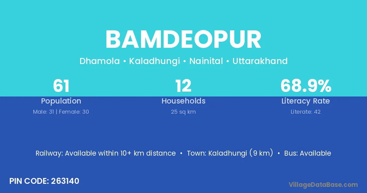 Kaladhungi (9 km) is the nearest town to Bamdeopur village for major economic activities and is located approximately 9 km away.