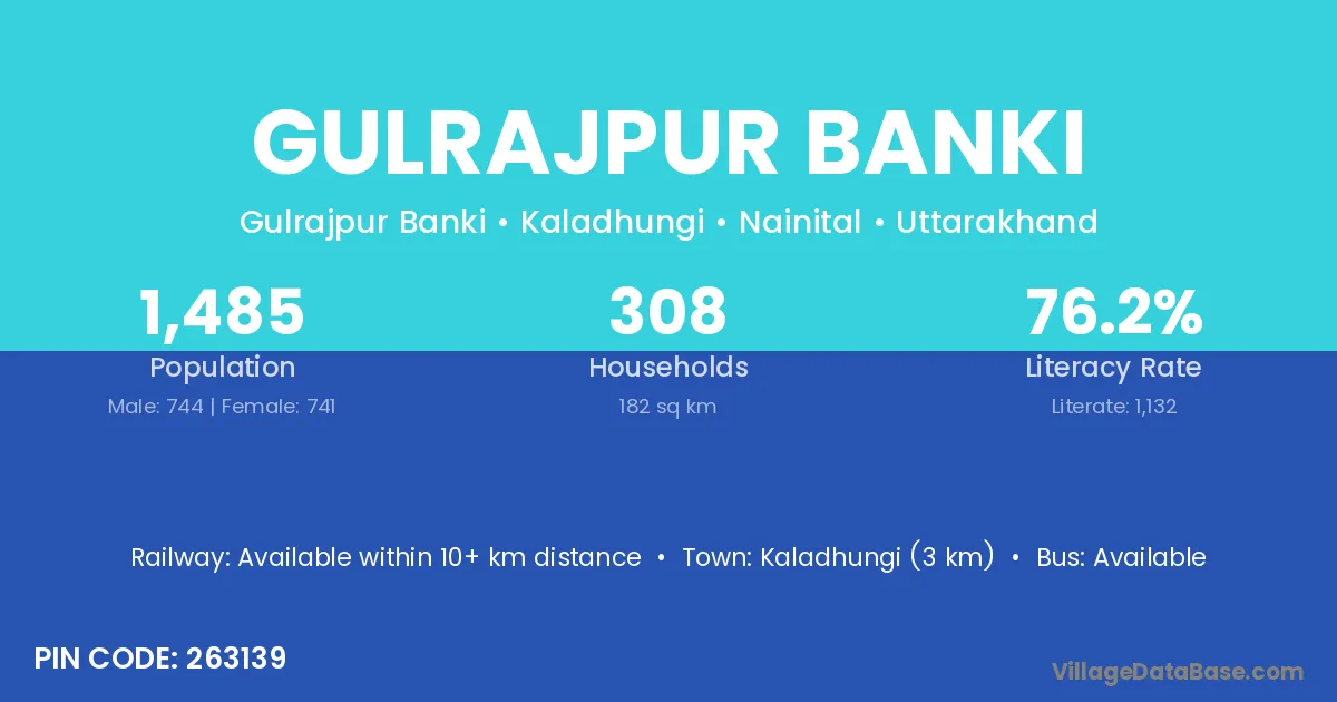 Kaladhungi (3 km) is the nearest town to Gulrajpur Banki village for major economic activities and is located approximately 3 km away.