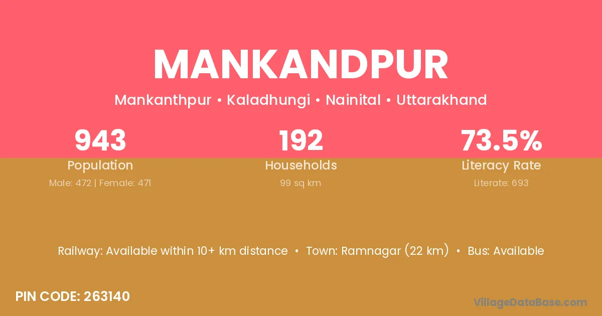 Ramnagar (22 km) is the nearest town to Mankandpur village for major economic activities and is located approximately 22 km away.