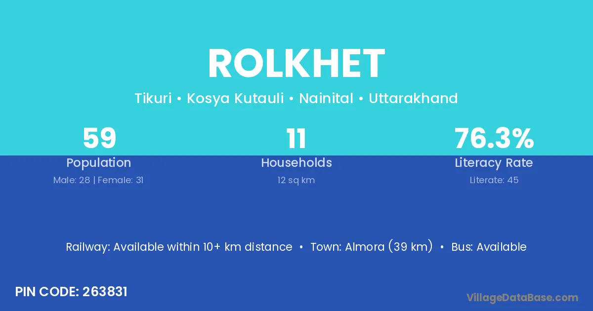Almora (39 km) is the nearest town to Rolkhet village for major economic activities and is located approximately 39 km away.