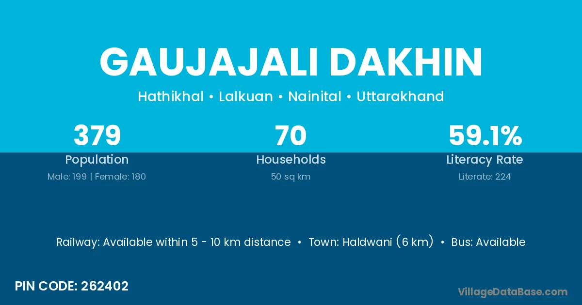 Haldwani (6 km) is the nearest town to Gaujajali Dakhin village for major economic activities and is located approximately 6 km away.