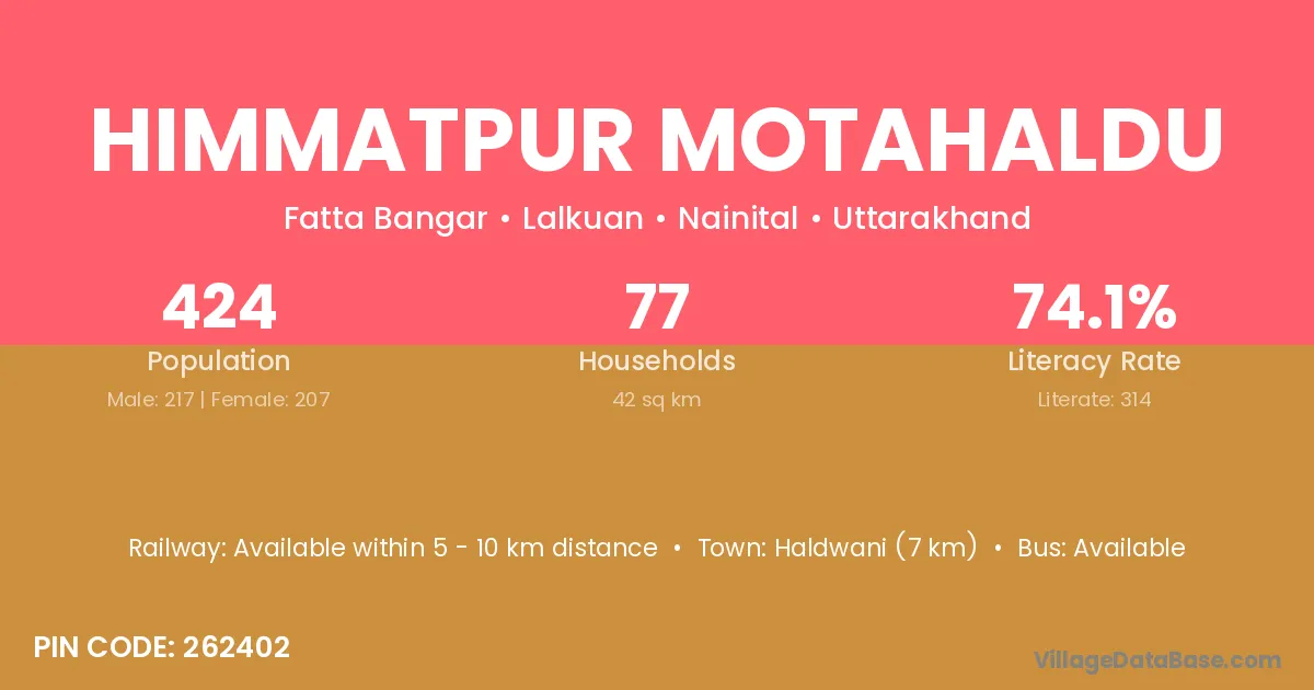 Himmatpur Motahaldu village has a total population of 424 people, of which 217 are males and 207 are females.