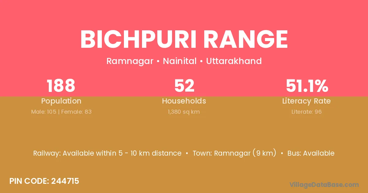 Ramnagar (9 km) is the nearest town to Bichpuri Range village for major economic activities and is located approximately 9 km away.