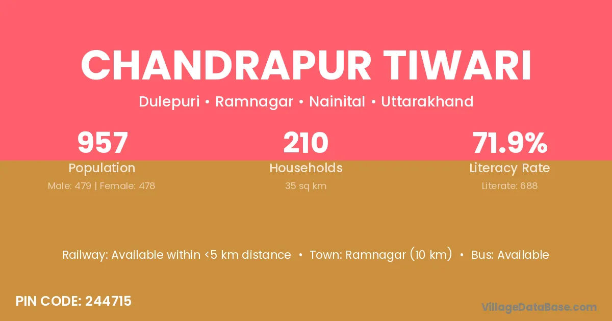 Chandrapur Tiwari village has a total population of 957 people, of which 479 are males and 478 are females.