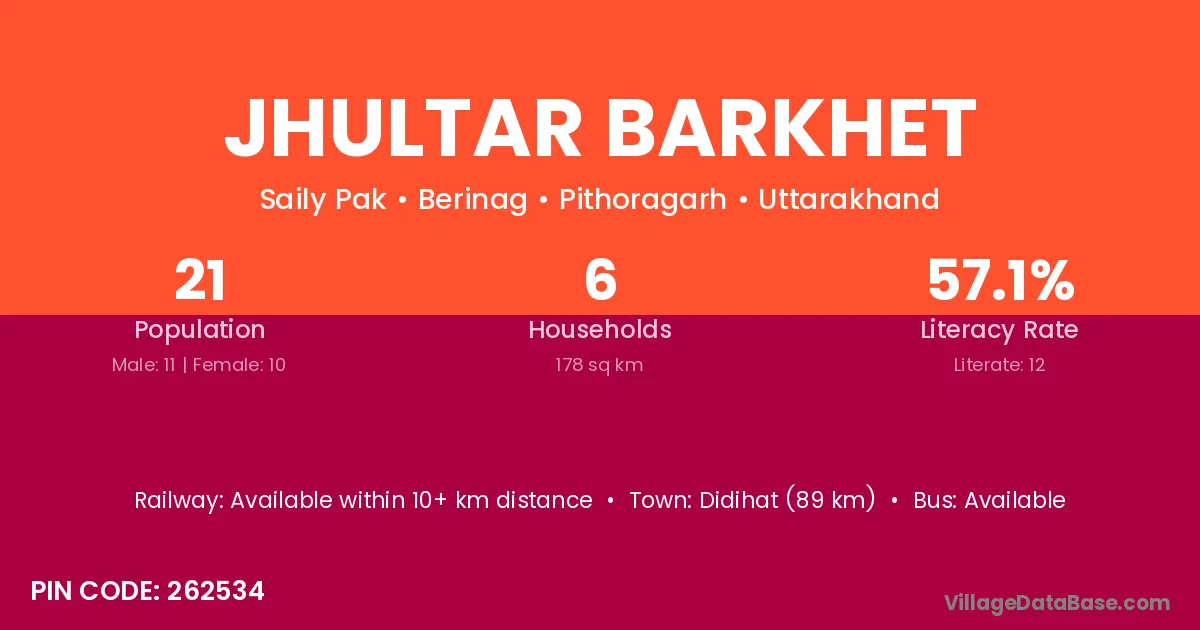 Didihat (89 km) is the nearest town to Jhultar Barkhet village for major economic activities and is located approximately 89 km away.