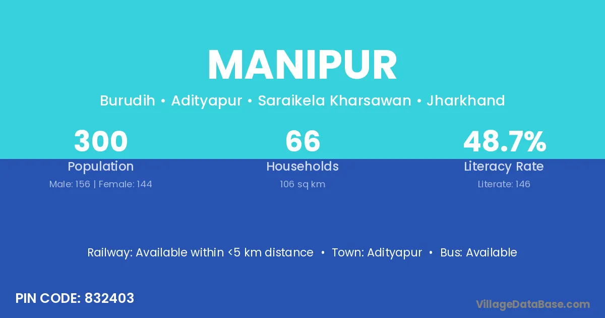 The literacy rate of Manipur village is 80.67%. Male literacy stands at 91.23% and female literacy at 70.97%.