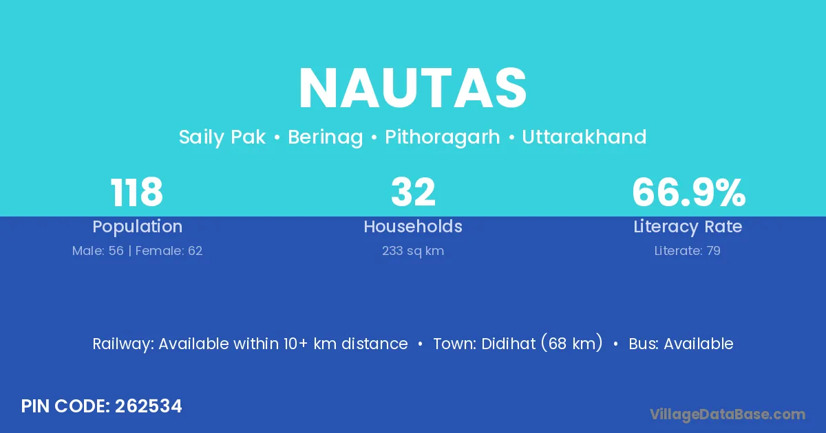 Didihat (68 km) is the nearest town to Nautas village for major economic activities and is located approximately 68 km away.