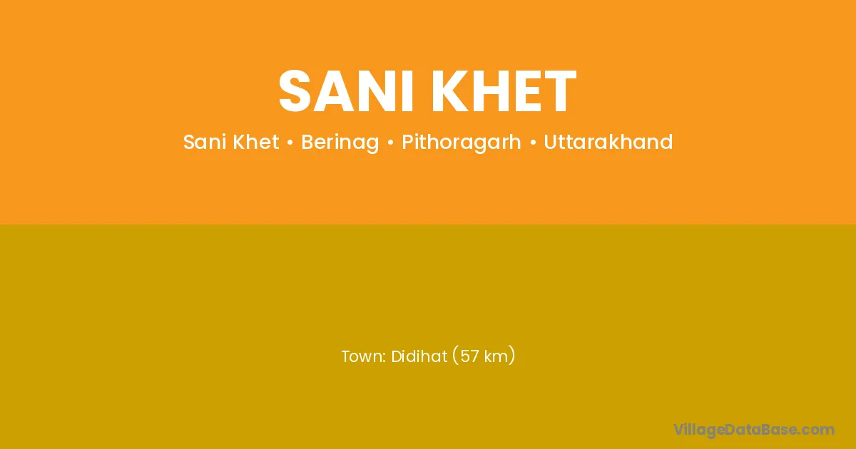 Didihat (57 km) is the nearest town to Sani Khet village for major economic activities and is located approximately 57 km away.