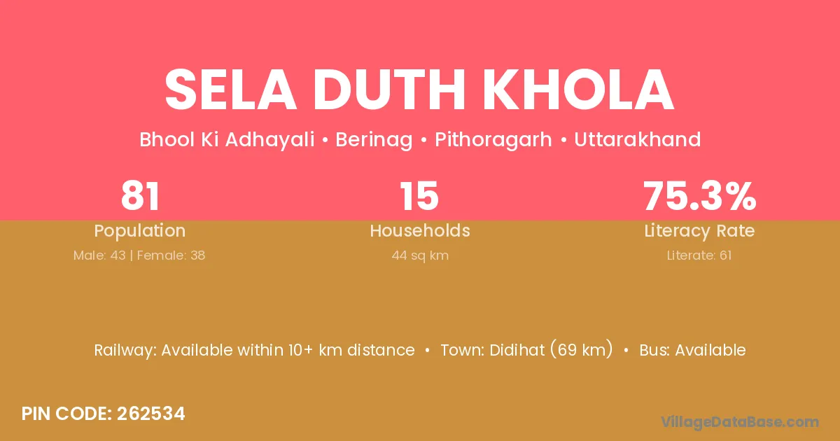 Sela Duth Khola village is located in the Berinag Tehsil of the Pithoragarh district in Uttarakhand .