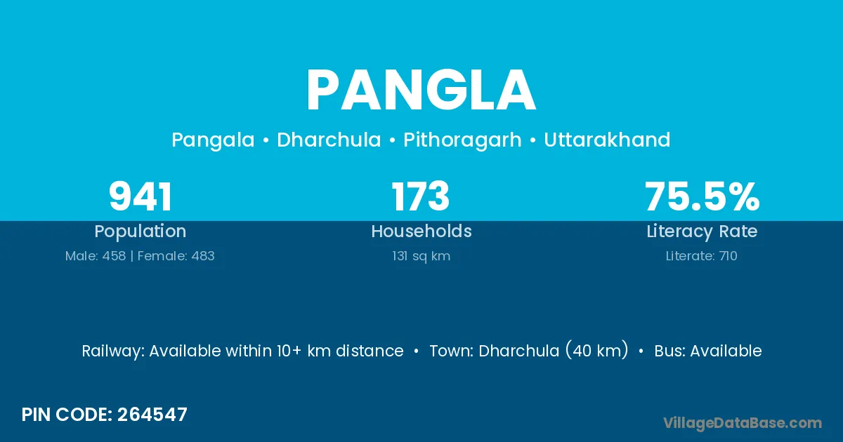 Dharchula (40 km) is the nearest town to Pangla village for major economic activities and is located approximately 40 km away.