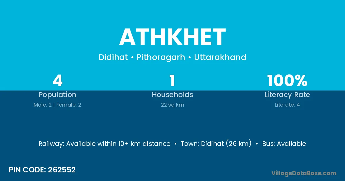 Didihat (26 km) is the nearest town to Athkhet village for major economic activities and is located approximately 26 km away.