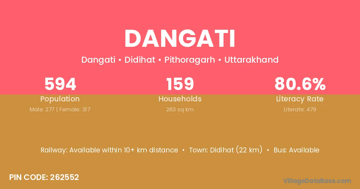 Didihat (22 km) is the nearest town to Dangati village for major economic activities and is located approximately 22 km away.