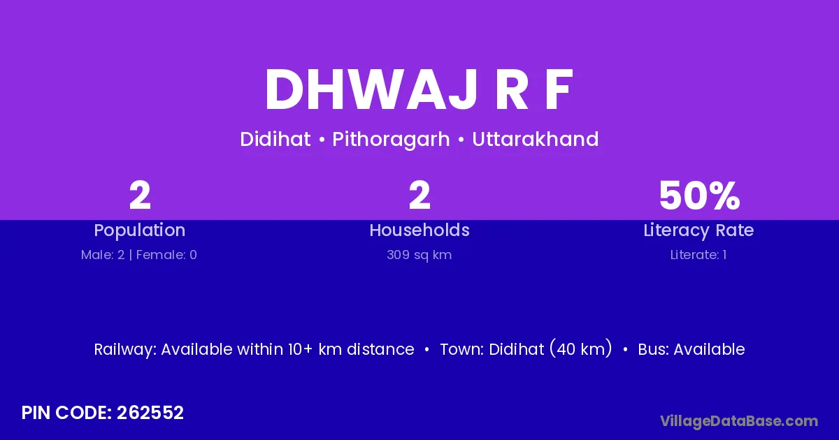 Didihat (40 km) is the nearest town to Dhwaj R F village for major economic activities and is located approximately 40 km away.
