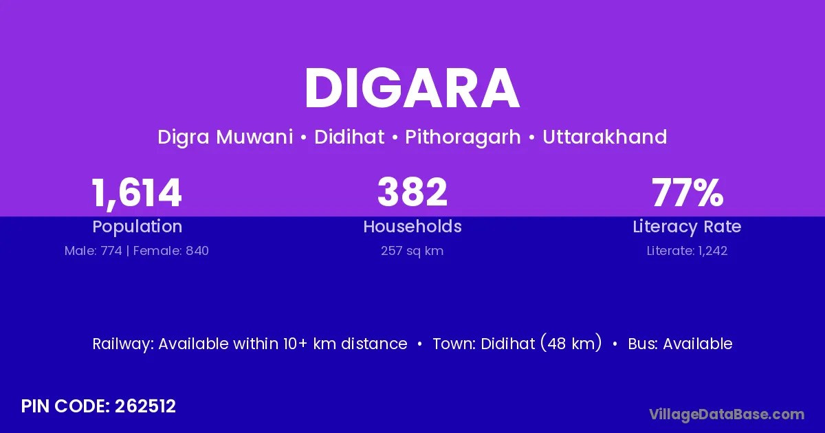 Didihat (48 km) is the nearest town to Digara village for major economic activities and is located approximately 48 km away.