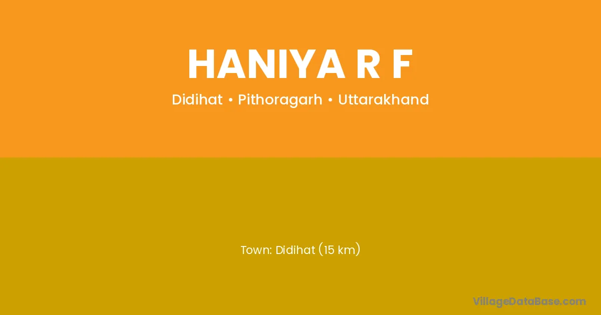 Didihat (15 km) is the nearest town to Haniya R F village for major economic activities and is located approximately 15 km away.