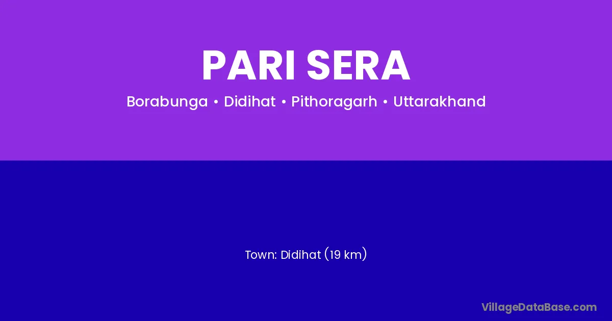 Didihat (19 km) is the nearest town to Pari Sera village for major economic activities and is located approximately 19 km away.