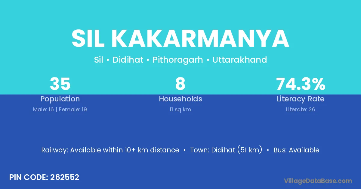 Didihat (51 km) is the nearest town to Sil Kakarmanya village for major economic activities and is located approximately 51 km away.